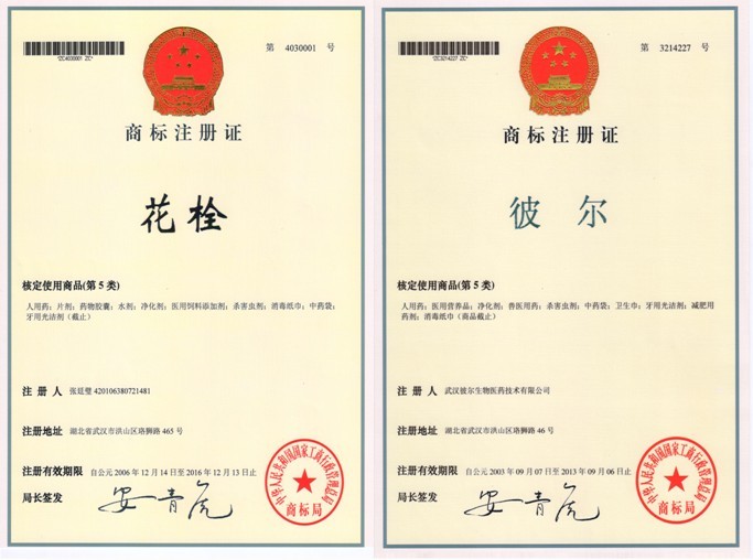 “花栓豆”、“花栓”、“彼尔”是武汉彼尔生物医药技术有限公司的注册商标。